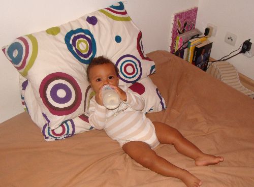 Papa et maman se préparent pour sortir. Moi je prends mon bib. 24/05
