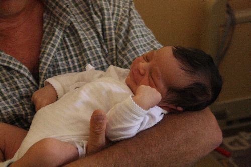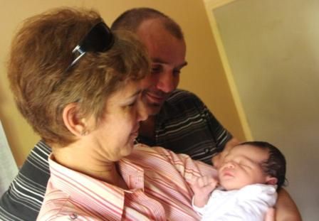 Geneviève et Jérôme sont venus me voir à la maternité. 11/08