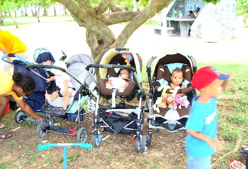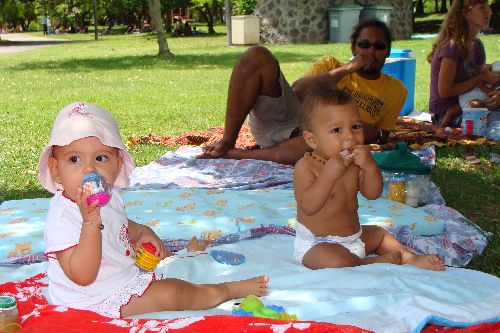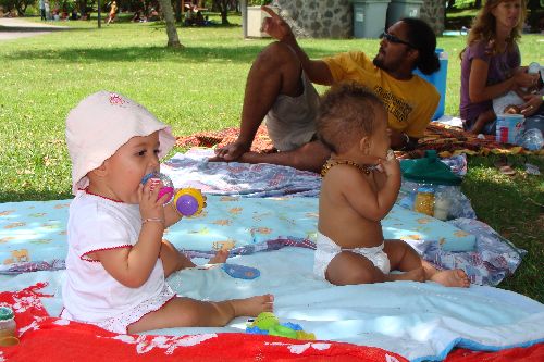 Pique nique au Colosse à St André avec Pierre et Caro et leurs copains. Ca fait une sacrée brochette de poussettes! 08/03