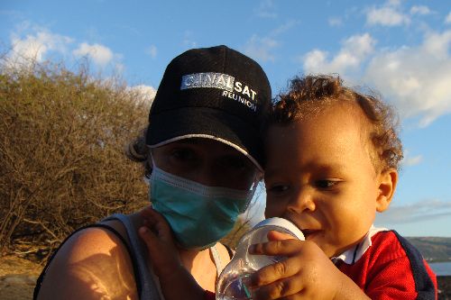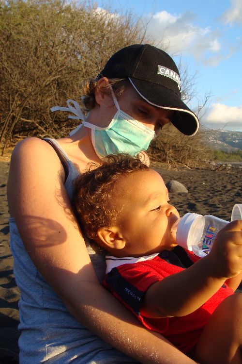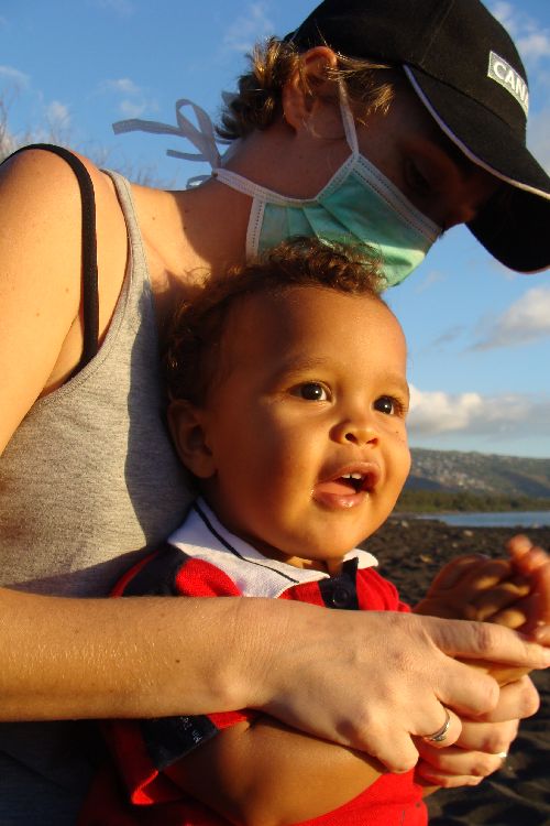 Maman porte un masque pour me protéger de la grippe qu'elle a attrapée à l'école... 06/09/09